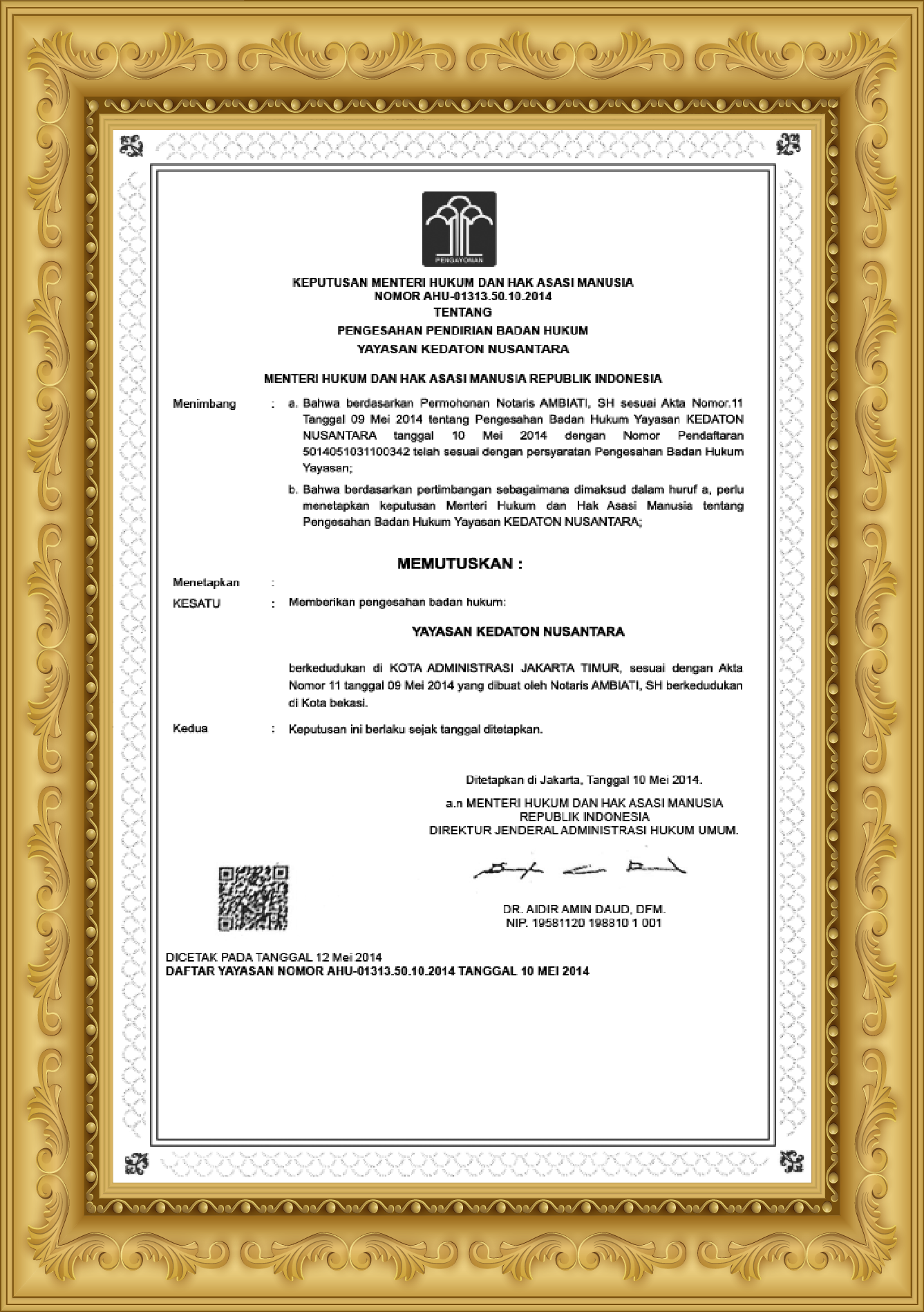 Yayasan Kedaton Nusantara (YAKATRA) telah berjaya didaftarkan pada tanggal 10 Mei 2014 di Kementerian Hukum Hakam dan Hak Asasi Manusia Jakarta Indonesia dengan nomor pendaftaran 5014051031100342.